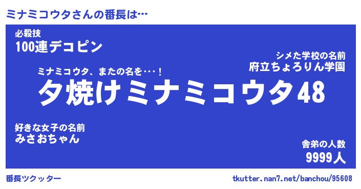 | 伝説のあだ名 | 『封印されしスナイパーミナミコウタ』 |