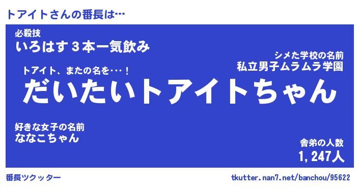 | 意味不明あだ名 | 『ペロリントアイト』『永久保存トアイト』 |
