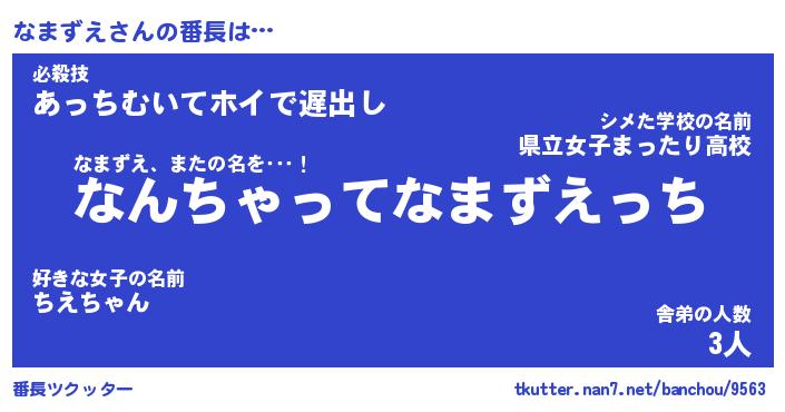 | 伝説のあだ名 | 『伝説のスナイパーなまずえ』 |