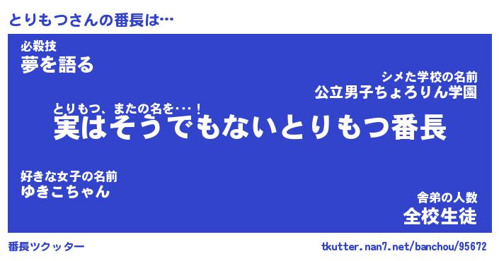 | ヒーロー風カッコイイあだ名 | 『スーパートリモツ』『暗黒騎士トリ』 |