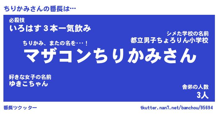 | ヒーロー風カッコイイあだ名 | 『スーパーチリカミ』『魔戒騎士チリ』 |