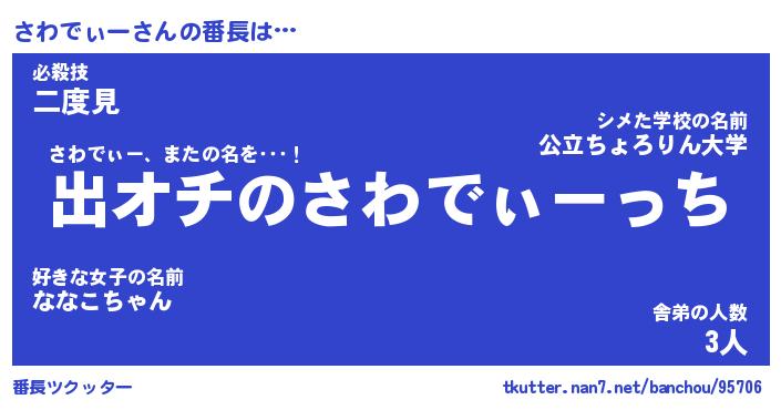 | 男性向けラノベタイトル風あだ名 | 『さわでぃーの憂鬱』 |