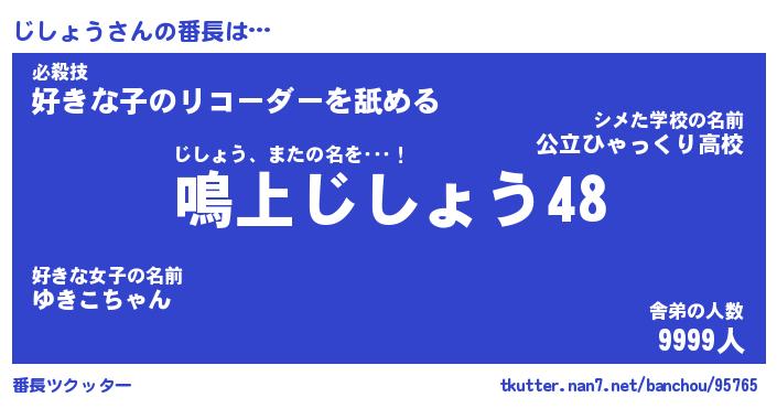 | ピコ太郎風あだ名 | 『ジコ五郎』『ピジ六郎』『ジシ八郎』 |