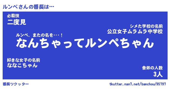 | 意味不明あだ名 | 『ペロリンルンペ』『ルンペフォーエバー』 |