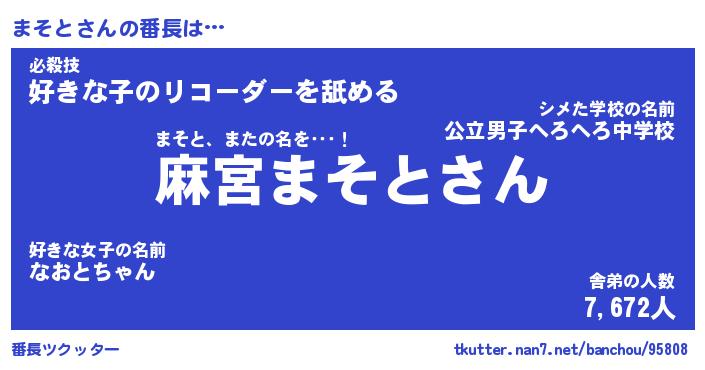 | ピコ太郎風あだ名 | 『マコ十郎』『ピマ六郎』『マソ太郎』 |