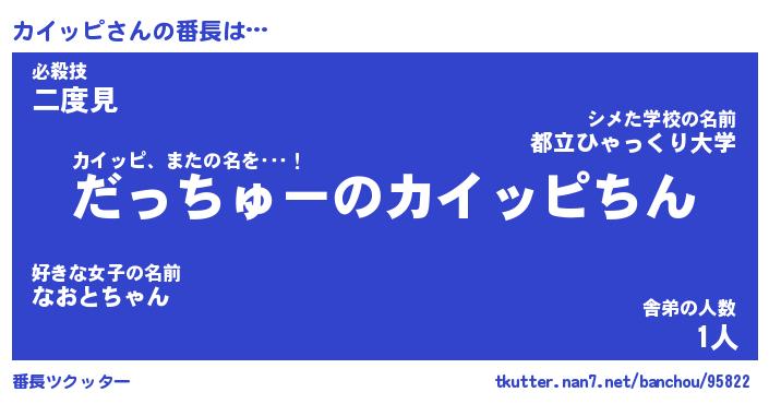 | 伝説のあだ名 | 『伝説のスナイパーカイッピ』 |
