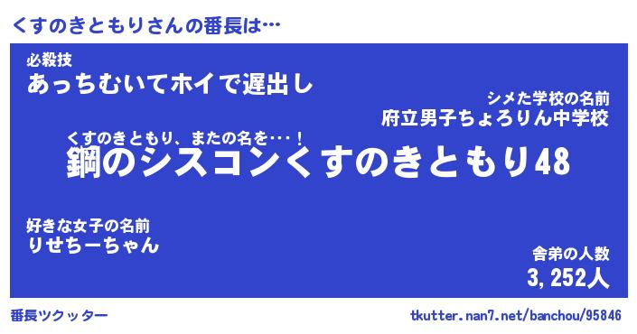 | 伝説のあだ名 | 『封印されし傭兵くすのきともり』 |