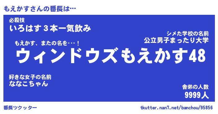 | 肩書あだ名 | 『もえかすCEO』『もえかす国家主席』 |