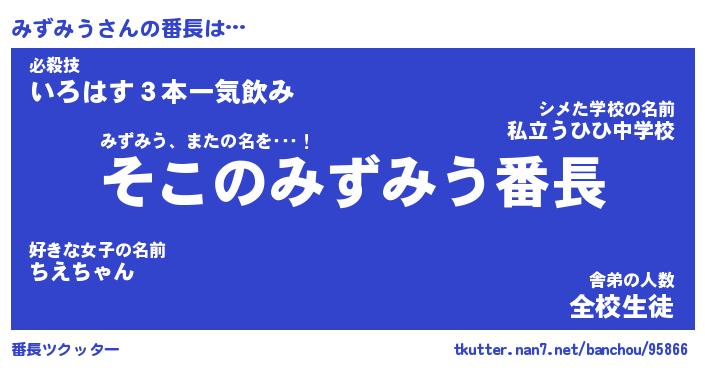 | 意味不明あだ名 | 『ペロリンみずみう』『永久保存みずみう』 |
