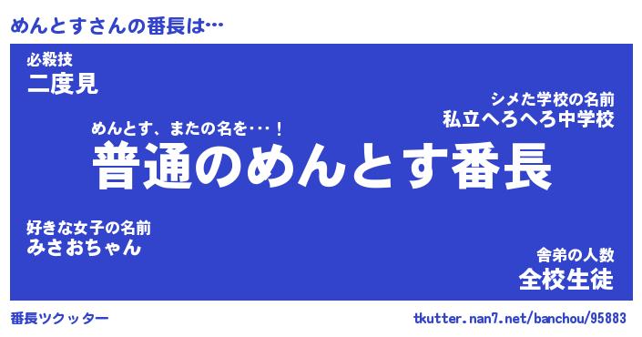 | ヒーロー風カッコイイあだ名 | 『スーパーメントス』『暗黒騎士メン』 |