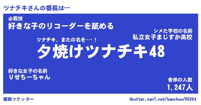 | 意味不明あだ名 | 『ペロリンツナチキ』『永久保存ツナチキ』 |