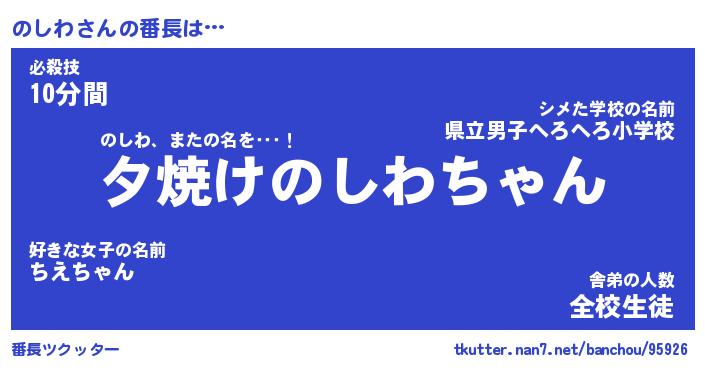 | ピコ太郎風あだ名 | 『ノコ次郎』『ピノ三郎』『ノシ十郎』 |