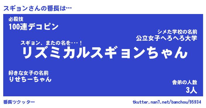 | ヒーロー風カッコイイあだ名 | 『スーパースギョン』『天弓騎士スギ』 |