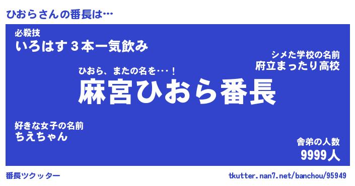 | ヘコむあだ名 | 『ひおにー』『なまこ酢』『ひお太郎』 |
