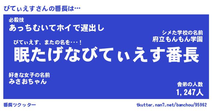 | 意味不明あだ名 | 『ペロリンびてぃえす』 |
