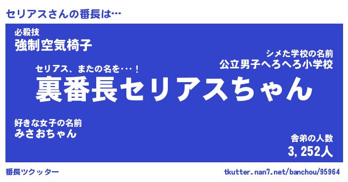 | 意味不明あだ名 | 『ペロリンセリアス』『永久保存セリアス』 |