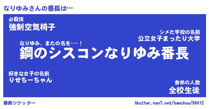 | ヒーロー風カッコイイあだ名 | 『スーパーナリユミ』『暗黒騎士ナリ』 |
