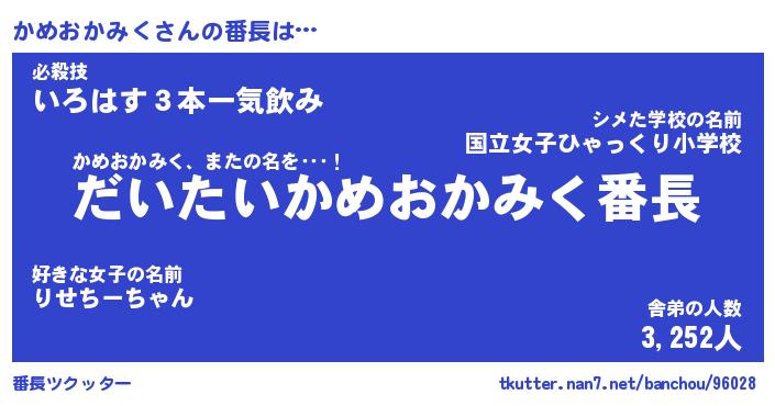 | ヒーロー風カッコイイあだ名 | 『スーパーカメオカミク』『幻影騎士カメ』 |