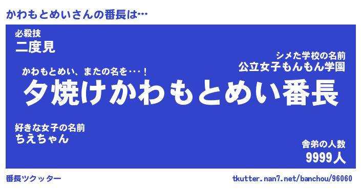 | ポケモン風あだ名 | 『カワチュウ』『カワモダネ』 |