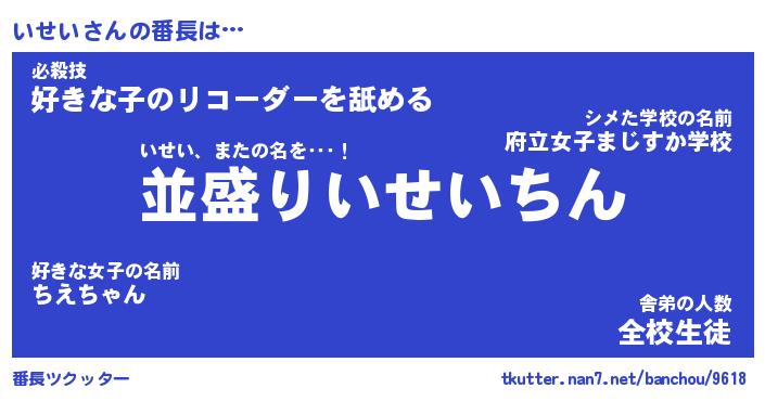 | 意味不明あだ名 | 『ペロリンいせい』『いせいフォーエバー』 |