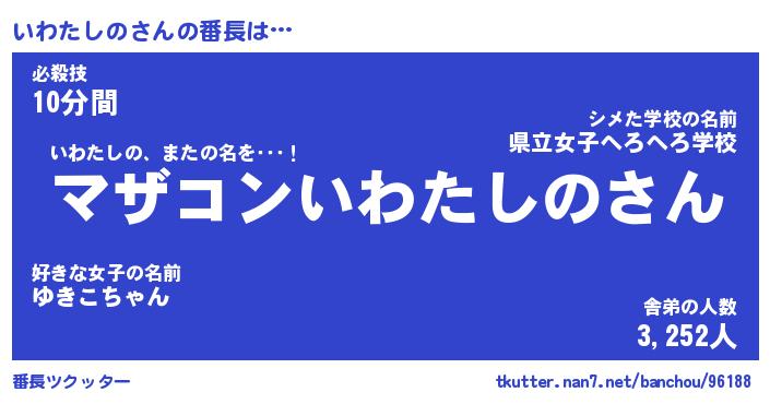 | ファンタジー風あだ名 | 『イワフェル』『エターナルイワタシノー』 |