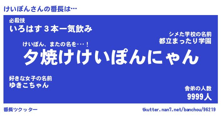 | 意味不明あだ名 | 『ペロリンけいぽん』『永久保存けいぽん』 |