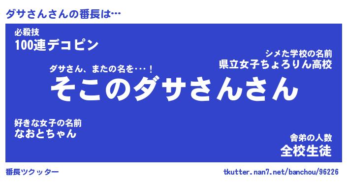 | ヒーロー風カッコイイあだ名 | 『スーパーダササン』『暗黒騎士ダサ』 |