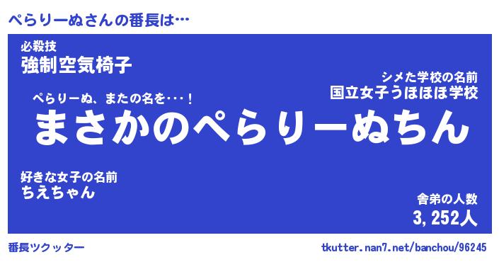 | 肩書あだ名 | 『ぺらりーぬ御曹司』『ぺらりーぬ塾長』 |