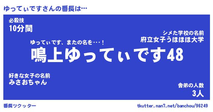 | 2回繰り返すあだ名 | 『ゆっゆっ』『ゆゆっっ』『おらおら』 |