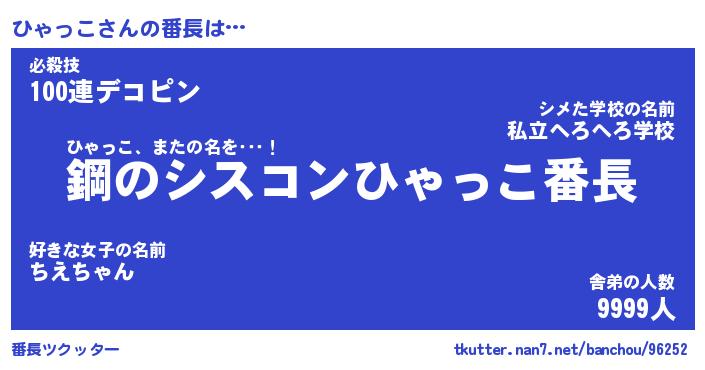 | ピコ太郎風あだ名 | 『ヒコ一郎』『ピヒ六郎』『ヒャ史郎』 |