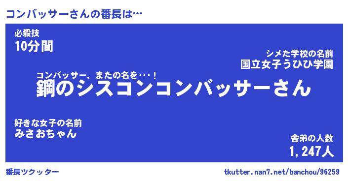 | 男性向けラノベタイトル風あだ名 | 『コンバッサーアートオンライン』 |