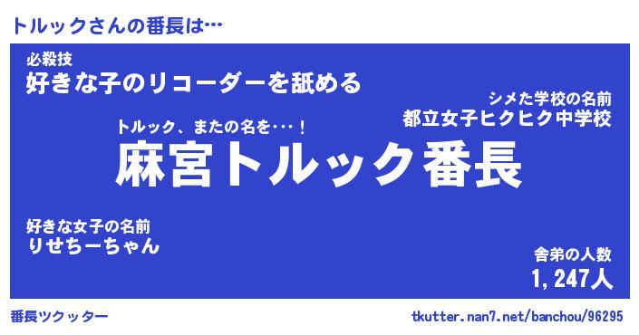 | 意味不明あだ名 | 『ペロリントルック』『永久保存トルック』 |