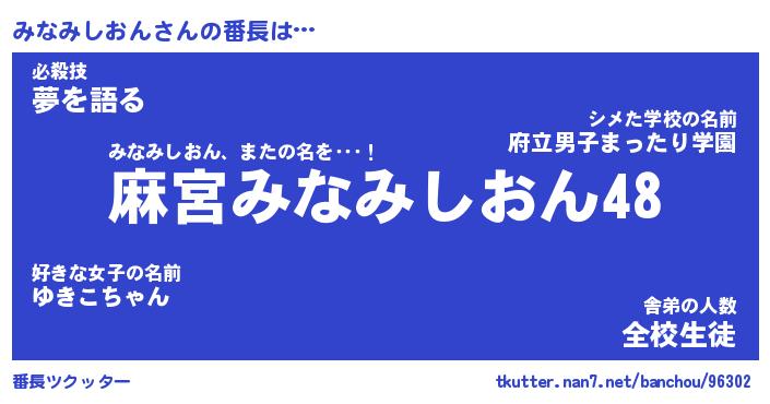 | ヒーロー風カッコイイあだ名 | 『スーパーミナミシオン』『魔戒騎士ミナ』 |