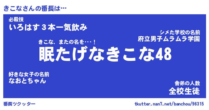 | ヘコむあだ名 | 『きこふぇ~』『酢こんぶ』『きこを』 |