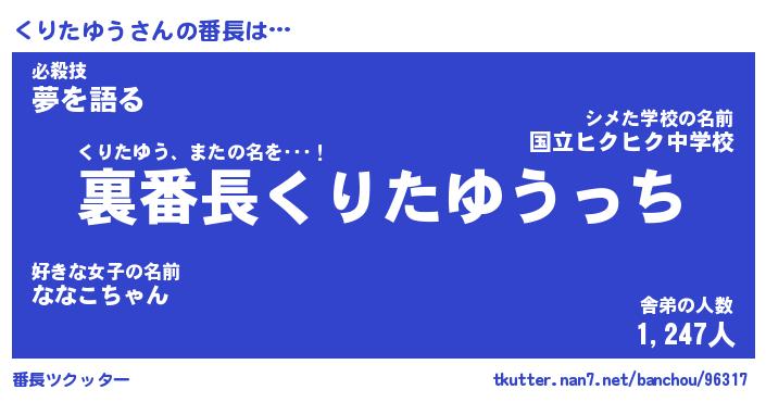 | ヘコむあだ名 | 『くりにー』『酢こんぶ』『くり太郎』 |