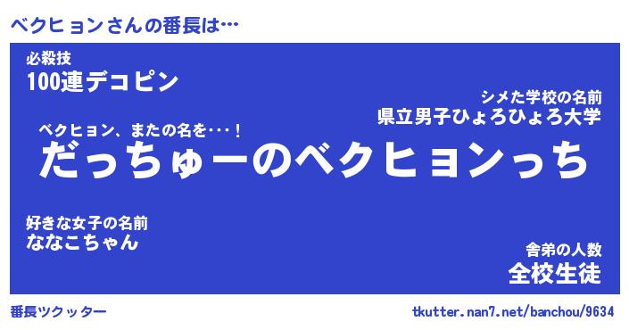 | 2回繰り返すあだ名 | 『ベクベク』『ベベクク』『ぎとぎと』 |
