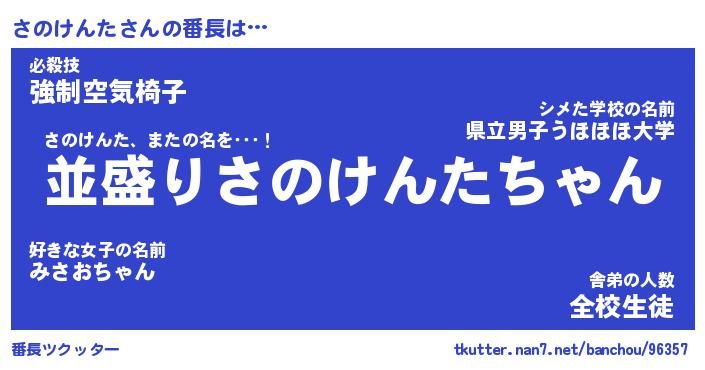 | 伝説のあだ名 | 『不死鳥のスナイパーさのけんた』 |