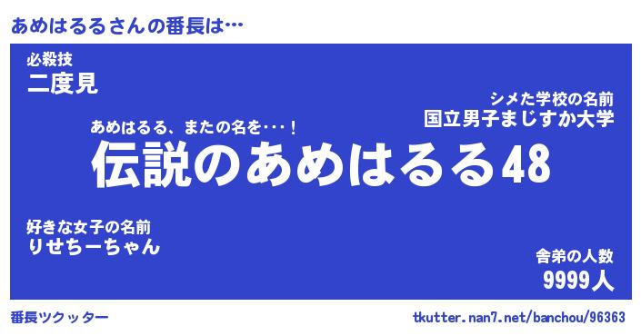 | 伝説のあだ名 | 『伝説のスナイパーあめはるる』 |