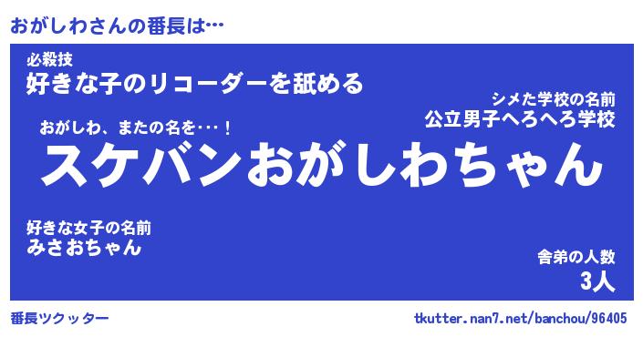 | 意味不明あだ名 | 『ペロリンおがしわ』『永久保存おがしわ』 |