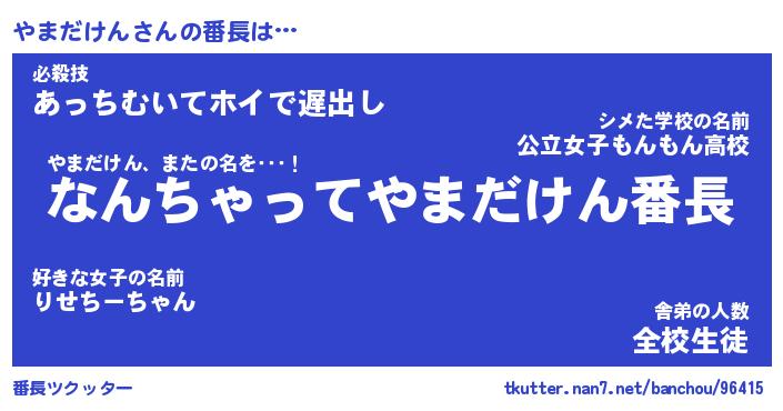 | ファンタジー風あだ名 | 『ヤマフェル』『エターナルヤマダケンー』 |
