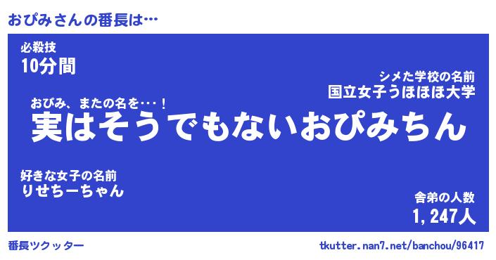 | ファンタジー風あだ名 | 『オピフェル』『エターナルオピミー』 |