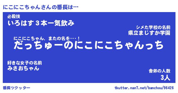 | ポケモン風あだ名 | 『ニコチュウ』『ニコニダネ』 |