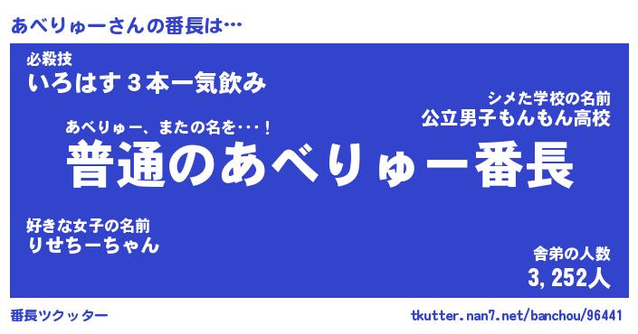 | 男性向けラノベタイトル風あだ名 | 『あべりゅーの憂鬱』 |