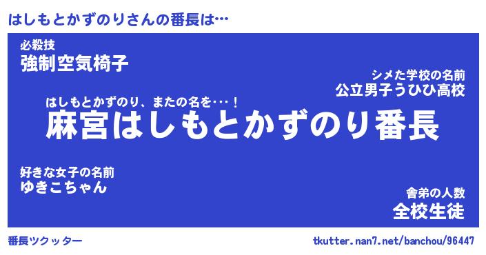 | 男性向けラノベタイトル風あだ名 | 『ハシモトカズノリアートオンライン』 |