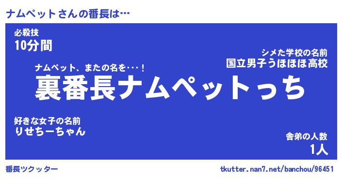 | ファンタジー風あだ名 | 『ナムフェル』『エターナルナムペットー』 |