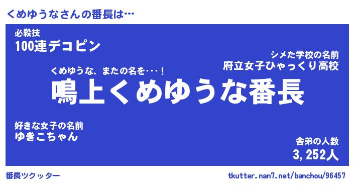 | ヘコむあだ名 | 『くめにゅー』『つくし』『くめっ子』 |