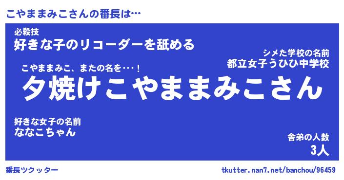 | 伝説のあだ名 | 『封印されしスナイパーこやままみこ』 |