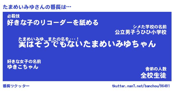 | 肩書あだ名 | 『たまめいみゆ店長』『たまめいみゆ教頭』 |