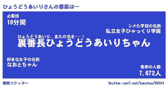 | 女子向けラノベタイトル風あだ名 | 『ひょうどうあいり姫と円卓の騎士』 |