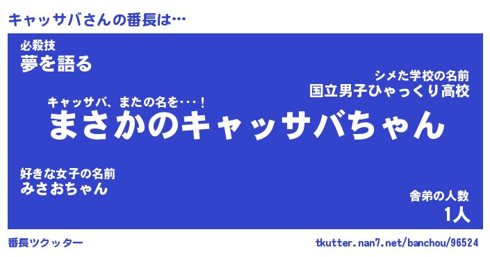 | ヒーロー風カッコイイあだ名 | 『スーパーキャッサバ』『幻影騎士キャ』 |